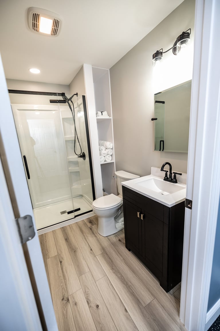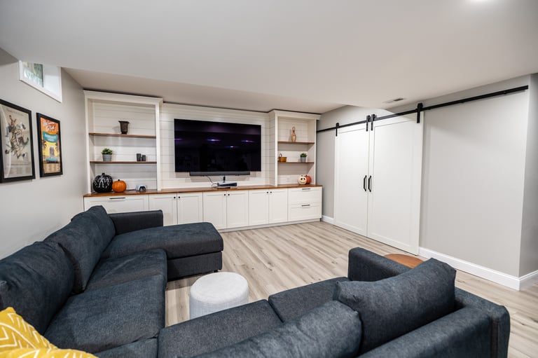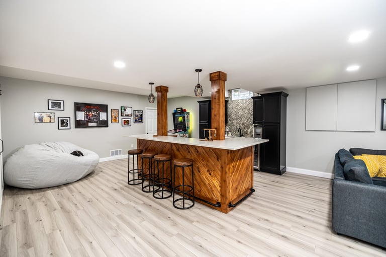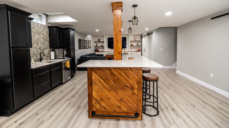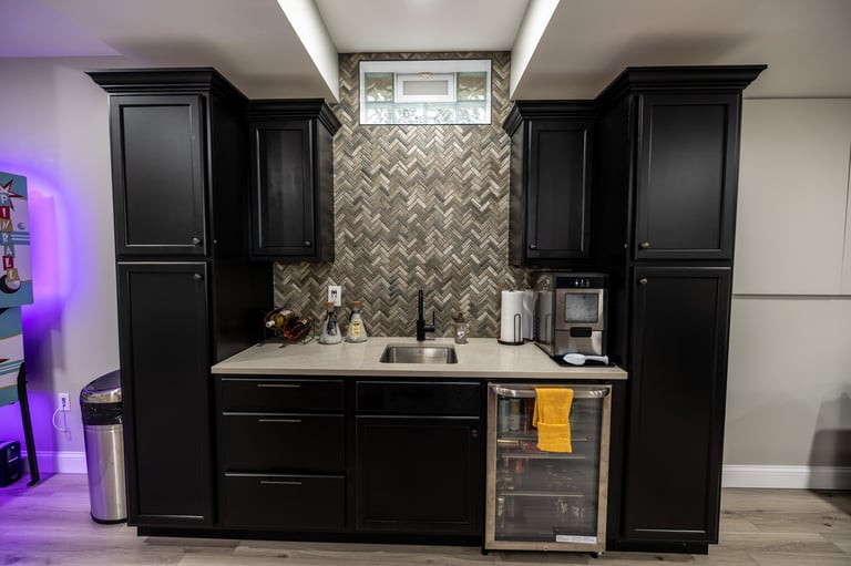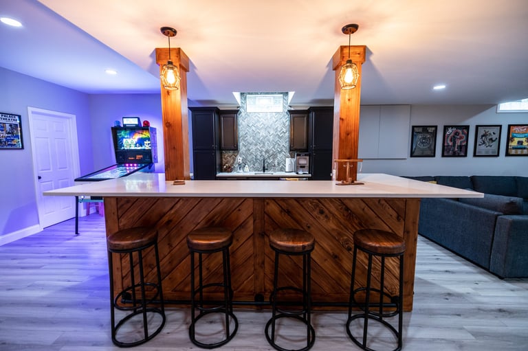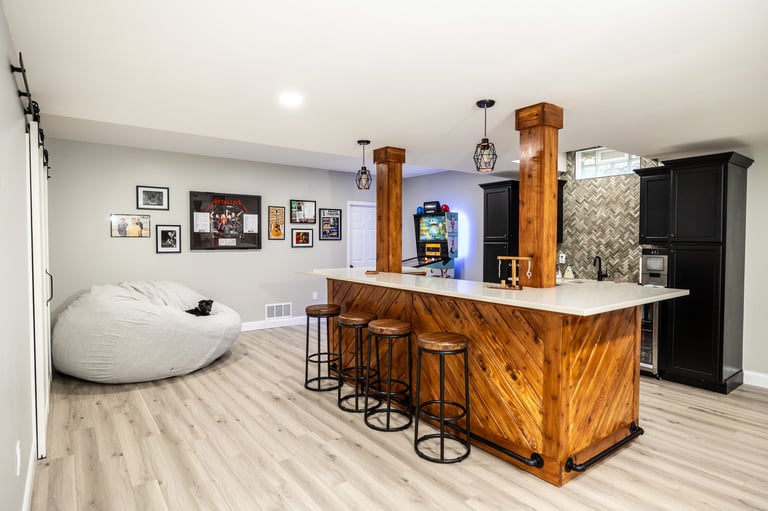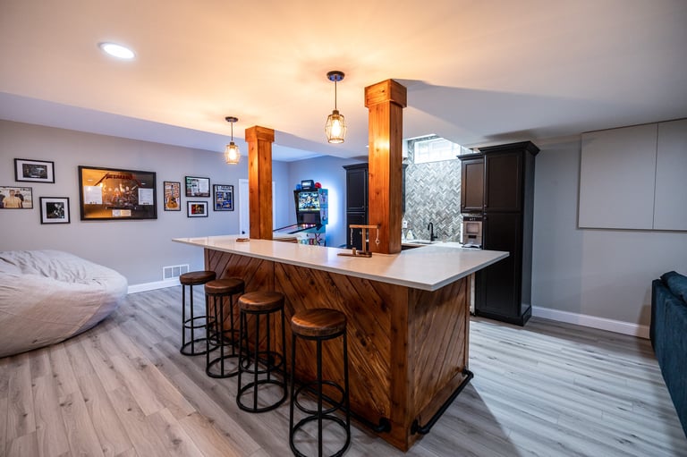 Transforming this basement was an absolute pleasure! What began as an unfinished space is now a stunning extension of the home — complete with a stylish kitchenette, custom built bar and beautiful bathroom. The homeowners had a clear vision, and our team was proud to bring it to life with precision and care. Imagine what we could do with your space!